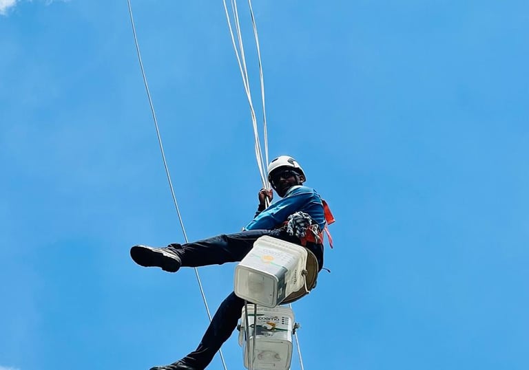 Especialistas em acesso por cordas, realizamos serviços em locais de difícil acesso com segurança.