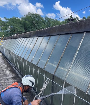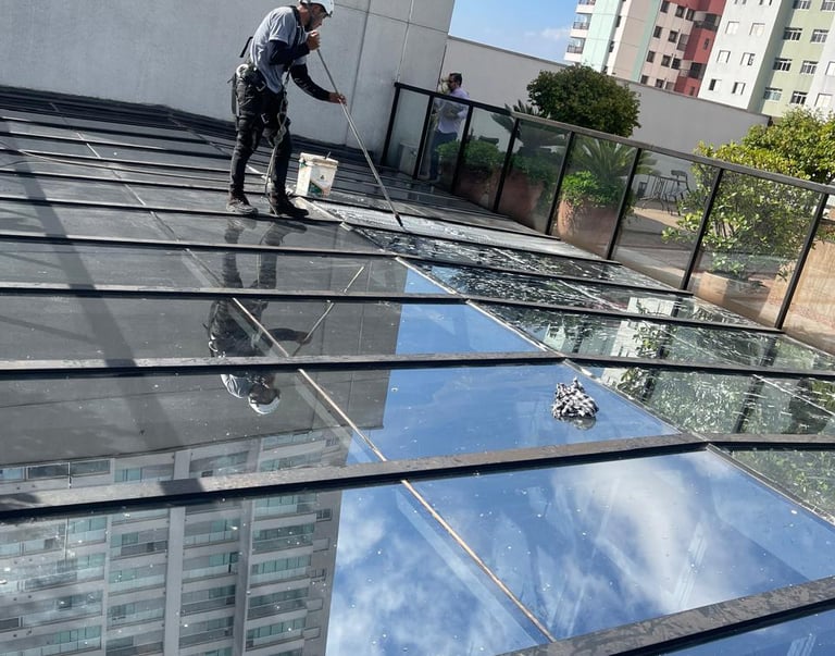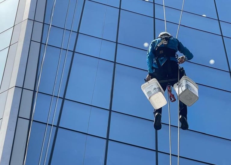 Oferecemos limpeza de vidros, fachadas, telhados e acesso por cordas para todos os tipos de clientes.